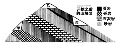 【小题2】开挖甲基地所出露的岩石在古时代是如何生成的( )