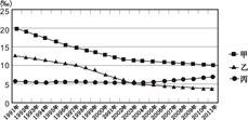 5、单选题 下图表示近20年来我国人口的变化情况。读图完成问题。1.甲、乙、丙分别表示2.有关我国现阶段人口的叙述,正确的是