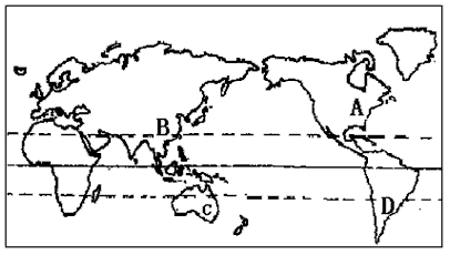 (1)填出图中A—D四地字母所代表的农业地域类型: