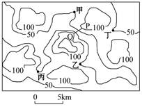 4、单选题 读某地等高线地形图,回答问题。1.图中P、Q两地间有一座桥梁,该桥和其下溪谷的高差最接近2.当地环保部门在桥下采样检测水质时,发现高浓度农药残留。这些农药最有可能来自下列哪个地区