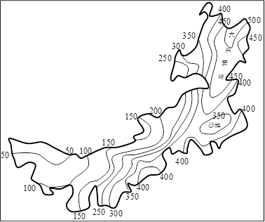 点评:此题难度较大,解题关键能运用等值线的分布规律推出闭合等值线内的数值范围。