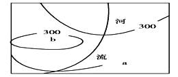 河流发育于山谷,山谷等高线凸向高处,图中等高距为200m,所以 a的数值为500。若两条相邻等高线A,B(假设A>B)之间,出现了闭合等高线,该闭合等高线的取值只能是A或B。当该闭合等高线取A值(即“大的”)时,其内部的海拔只能大于A,小于A+d(d为等高距)。这就叫“大于大的”。 当该闭合等高线取B值(即“小的”)时,其内部的海拔只能小于B,大于B-d(d为等高距)。这就叫“小于小的”。根据等高线“大于大的,小于小的”原理,b外边的等高线取300和500两条等高线中数值小的300,因此b的数值比300要小,但大于300减去等高距200即100,所以b大于100小于300,C正确。