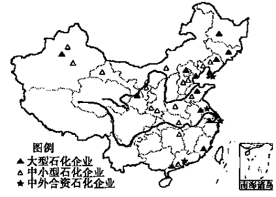 1.从图中不难看出:大型石化企业有原料导向型,例如新疆、黑龙江的石化企业;同时也有市场导向型,例如上海、广东等,故A、B选项错误。中小型石化企业绝大多数属于原料导向型,但也有市场导向型,例如广东,故C选项错误。中外合资企业主要分布在大连、江苏、上海、广东,临海布局,都在经济发达的地区,且当地石油资源缺乏,所以都属于市场导向型,故D选项正确。