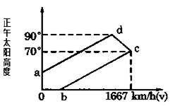 1、单选题  图中,横坐标为地球自转线速度,纵坐标为不同纬度四地点某日的正午太阳高度。据此完成下列问题。