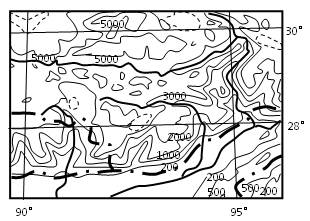 (3)内力作用主要表现为亚欧板块和印度洋板块强烈挤压,地壳不断隆升;(2分)外力作用主要表现流水的侵蚀和切割作用。(2分)