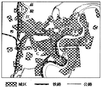 ? 重庆市我国西南地区最大的城市,也是本区最大的工业中心,地处河流交汇处是早期发展的优势区位条件。由于该地地形起伏,河流交错,形成了一个分散式的城市。下图是重庆略图。(1)根据重庆的发展可以推测,其主要的中心商务区可能位于A~D中________点,依据是________________________________________________________________________。