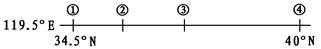 2、单选题 该图中,①、②间为海区,③地附近有著名的河口三角洲,①、④的附近都有重要海港和重要铁路经过或连接。据此回答问题。
