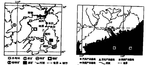 (5)根据给出的材料,从地理角度分析湖南和广东两省在发展经济过程中,扬长避短、加强合作,实现共同发展的途径。(4分)