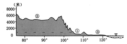材料二:下图为“中国沿32°N纬线地形剖面图”