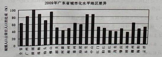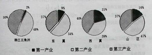 (4)四个区域中经济发展水平位居二、三位的是?、?;全省城市化水平最大差距是?;珠江口西岸三个城市城市化水平最低的是?。(8分)