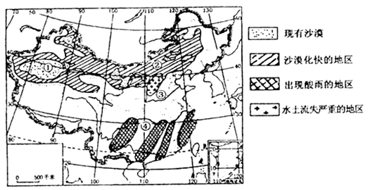 (2)图中②地区荒漠化的人为原因是?;为防治西北地区的荒漠化,我国正在上述地区进行巨大的生态工程建设为?。