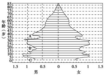材料三 下图为1995年我国人口金字塔图。