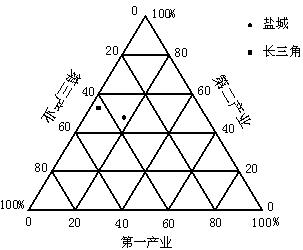 (2)比较2008年盐城市和原长三角地区三大产业结构的差异,并简述其原因。