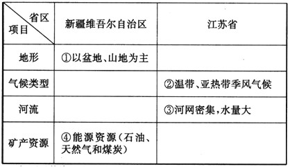 1、综合题 根据中央的战略部署,江苏省和新疆维吾尔自治区确立了对口支援关系。阅读材料,回答下列问题。
