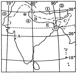 小题4:D地所在国家的名称是____,该国多洪涝灾害的原因是:_______________________________________(4分)