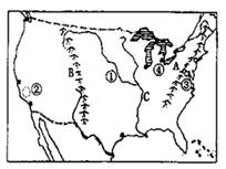 3、综合题 读美国地图,回答问题。