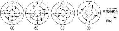 本题解析:台风是热带气旋强烈发展的形式,北半球气旋呈逆时针由四周向中心辐合如图③,所以C项正确。