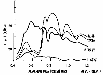 2、单选题 一种物质所产生的自身辐射,或对外来辐射所产生的反射和透射,形成了该物质的一种特别标志——波谱特征。下图显示了几种地物的反射波谱曲线,读图回答下列各题。1.上图地物,对各波段反射率都很低的是2.如果要对大兴安岭居中南段的林草分布进行遥感普查,则传感器最好调至哪个波段3.区分两种农作物播种面积的最佳遥感图像应拍自播种4.该卫星图像可能拍自