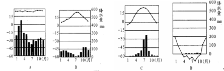 (1)比较A、D两种气候类型在分布地区上的差异。(4分)