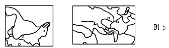 (1)、根据材料一,分别解释图5中A和B沼泽地的成因(4分)
