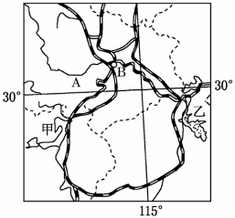 本题解析:由图中河流、湖泊、铁路等信息判断A所在地形区是江汉平原,是我国重要的商品粮、商品棉基地。B城为武汉,位于汉江与长江会合处,水陆交通便利。甲为洞庭湖,乙为都阳湖,由于泥沙淤积和围湖造田,导致湖面姜缩,尤其是洞庭湖。