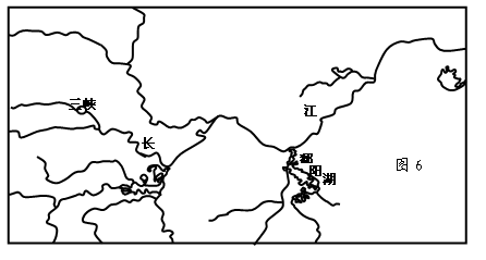 材料二:2011年入冬以来,鄱阳湖水位持续走低,鄱阳湖水位创60年历史新低,环湖城市供水受影响。鄱阳湖的位置示意如图6