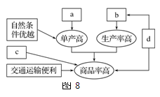 1、单选题 图8为“商品谷物农业区位条件示意图”。读图回答问题。1.图中a、b、c、d与下列区位条件对应正确的是