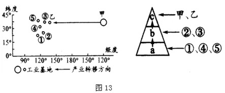 4、单选题 图13为某区域IT产业转移的路径图(左图)和IT产业竞争模式示意图(右图)。读图,完成第26-28题。