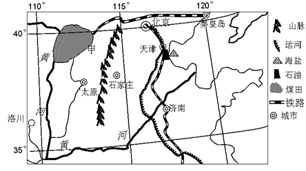 ①在图中填出甲、乙两处的工业部门:甲.____________;乙.____________。