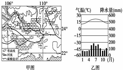 (2)乙图为该地区某城市年内各月降水量与气温图,试判断其气候类型并描述其气候特点。
