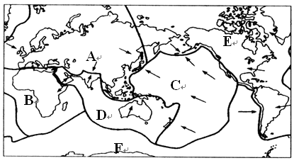 1、综合题 读六大板块示意图,回答下列问题:(9分,每空一分)
