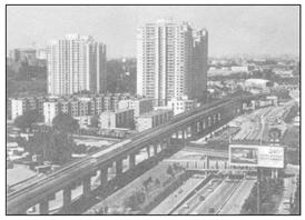 本题解析:从景观图片可以看出,城市轻轨多以高架形式,速度快,安全性高。