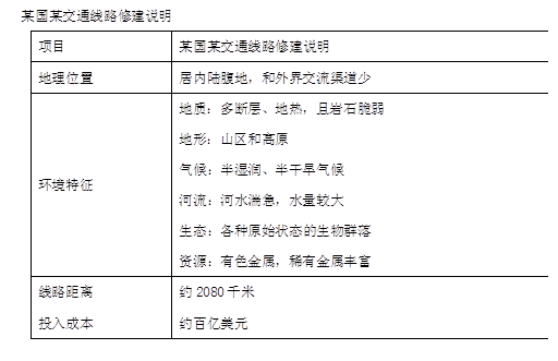 1、单选题 世界各国都十分重视交通运输建设,下表为“某国某交通线路修建说明”,以下表为依据完成下列小题。