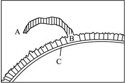 本题解析:本题主要考查太阳大气层外部结构及其太阳活动的有关知识。太阳外部结构分为三层,由里向外为光球层,即图中字母C,中间为色球层,即图中字母B,最外层为日冕层,即图中字母A。其中在最外层伸出长长的像舌头一样的为日饵。太阳黑子和耀斑为太阳活动的主要标志。其中黑子在光球层上,耀斑在色球层上。它们的活动周期均为11年。