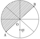 【小题2】日期的分界线有两条,一条是180°经线,另一条是0时所在地的经线。由阴影部分和非阴影部分日期的区别、地球自转的方向可知OB为180°经线,OA为0时所在的经线且为0°经线,所以甲地地方时为3时。