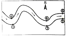 5、单选题 该图标注的南半球某河流两岸六地中,在自然状态下侵蚀较重的是