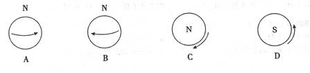 4、单选题 下面四幅图中,能够正确表示地球自转方向的是(? )