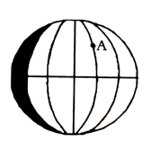 2、单选题 读右图(阴影部分为黑夜),回答题