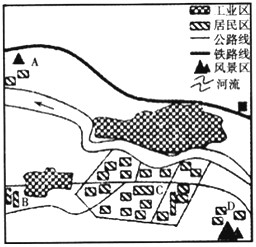 (4)ABCD四地中,最适宜建高级住宅区的是____地,原因是__________________。