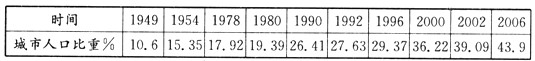材料二:下表是国家统计局发布的我国城市人口比重变化表。