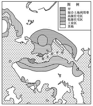 (1)图例中甲代表的城市功能区是_______ _____,该功能区一般具有哪些特点?(3分)