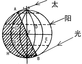 2、综合题 读“太阳光照示意图”回答下列问题。(14分)