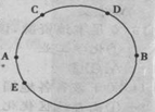 5、单选题 图中大圆为晨昏圈,图示部分为昼半球,A.B.C.D四点的坐标分别为A(0°,0°).B(0°,180°).C(41°N,22.5°E).D(41°N,157.5°E),E点的经度为15°W.据此回答下列各题。
