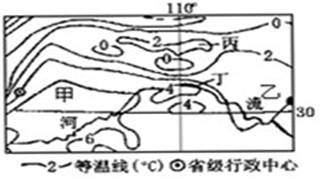 2、单选题 读我国某区域一月平均气温图,回答问题。1.图中甲、乙两地气温高低及影响因素的正确叙述是2.根据图中信息判断,下列说法错误的是