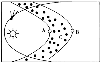 (2)图中B是________,C是________带。按结构特征分类A行星属__________,B行星属__________。