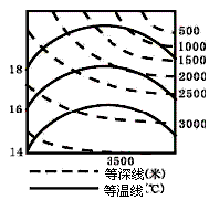 3、多选题 读“某海域等深线和表层年平均等温线分布图”,完成(1)——(3)题。