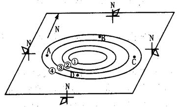 4、综合题 读“某地近地面等压线图2-26”及A、B、C、D四个不同方位的风向图(阴影部分表示风向出现的几率),据此分析回答下列问题。