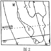 5.造成E处热带沙漠气候沿海岸线延伸2000多千米的