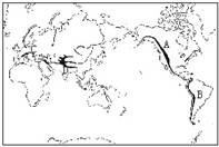 3、综合题 读“世界主要山脉分布图”,回答下列问题。