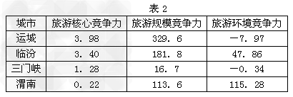 (3)旅游核心竞争力和旅游规模竞争力。要实现旅游业的跨越式发展,运城市应该采取措施提高旅游环境竞争力,如:优化产业结构,鼓励第三产业发展;扩大绿地面积,改善环境;加强交通建设,完善路网。